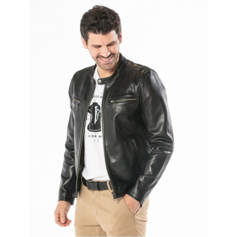 Blouson Homme BOMBARDIER Cuir Noir ou Marron>